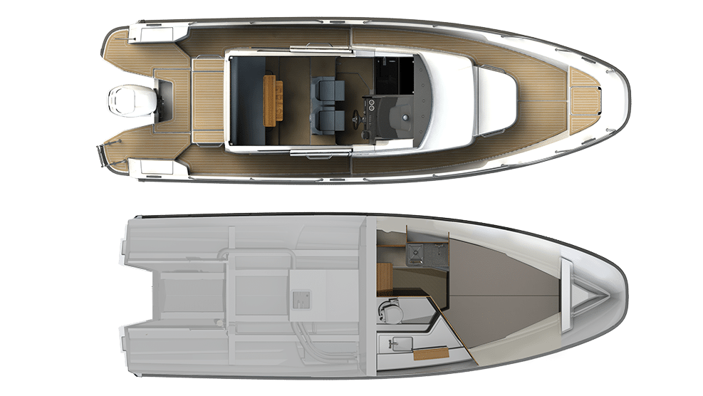 Guindeau électrique / Mât de ski / Teck ou Ecoteak / Eclairage sous marin / Surmatelas / Radar / Pilote automatique / Barres de toit / Portes cannes / Chauffe eau / Phare de recherche / Pack amarrage NIMBUS